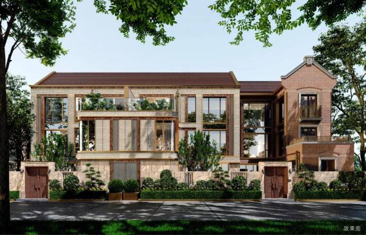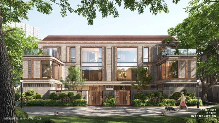 项目承袭了百年前的高端工艺元素,将清砖立柱、古典门头、岩石山墙等经典海派建筑风貌进行转译和突破,更适配现代人居审美。同时,项目超越了以往风貌建筑的尺度感,创新了风貌规制,带来了城心难得的双拼、三拼别墅。大窗墙比、大南向开间保证了极高的舒适度,大面积运用奢石的外立面则体现了名门望族的尊贵身份和非凡气度。