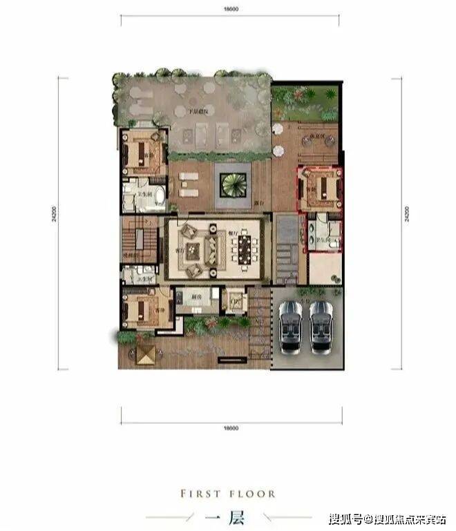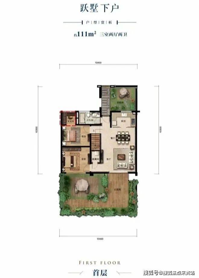 首层前庭后院、餐客厅等宽一体设计、双卧室