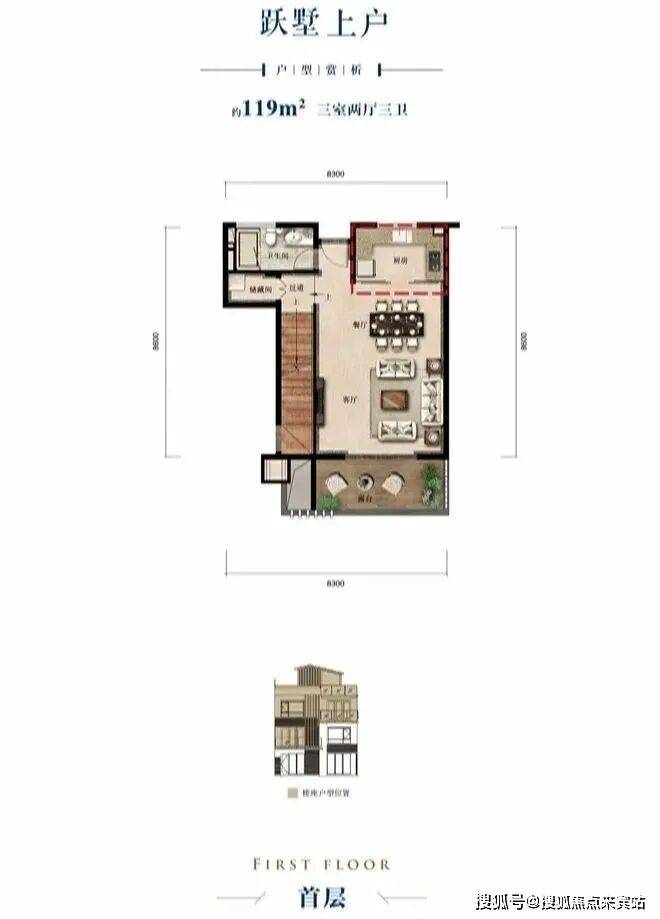首层独立入户、餐客厅等宽一体设计、方正露台