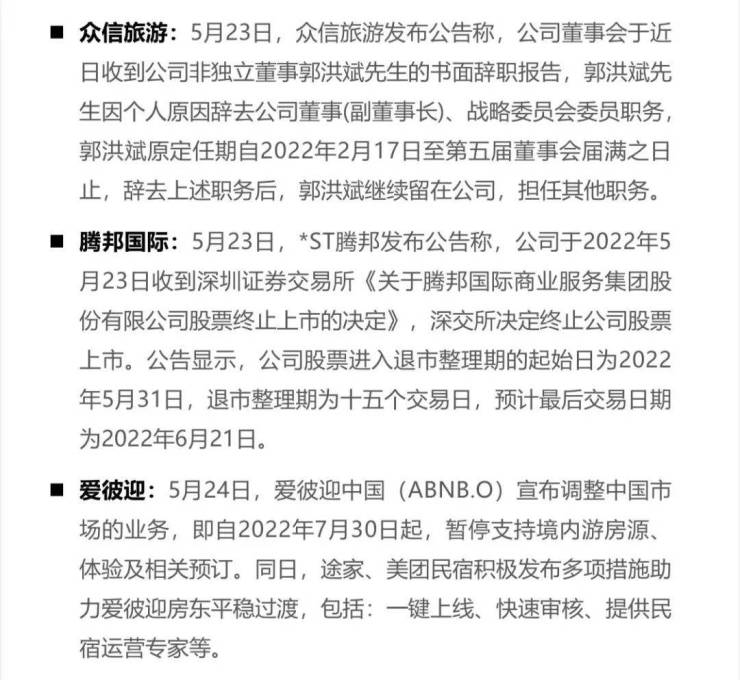 5月24日,全球民宿短租巨头Airbnb(爱彼迎)在其官网发布声明称,“将固本培元,全面服务于出境游,同时于2022年7月30日起暂停支持境内游房源、体验及相关预订”。同日,途家、美团民宿等平台发布多项措施助力爱彼迎房东平稳过渡,包括一键上线、快速审核、提供民宿运营专家等。