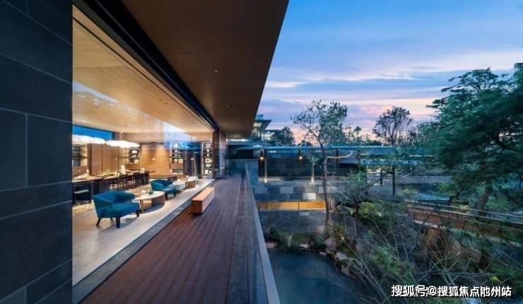 首先,以“藏”纳万象,以《西园雅集图》为空间蓝本,入口处白玉门廊镶嵌486片温润玉石,恰似《桃花源记》中“山有小口,仿佛若有光”的当代注解。设计师巧妙借用地势10米高差,让建筑如璞玉漂浮于山林之上,又以退让之姿完成现代建筑与自然的对话。