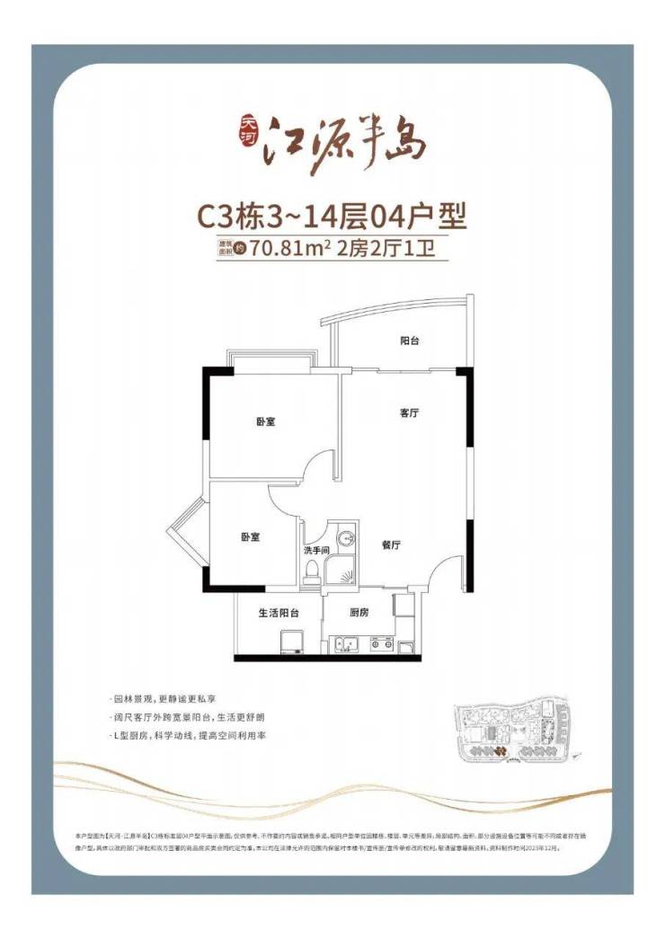 🅣🅞🅟03户型【82㎡2房1卫】南向园林景观