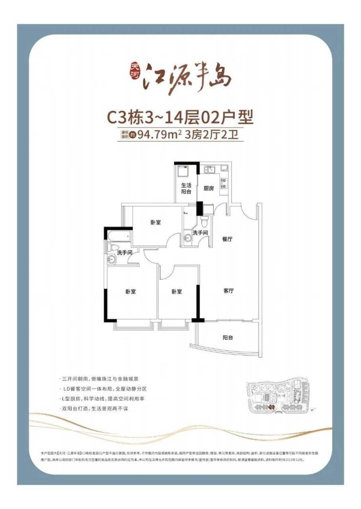 🅣🅞🅟02户型【95㎡3房2卫】东南向望江
