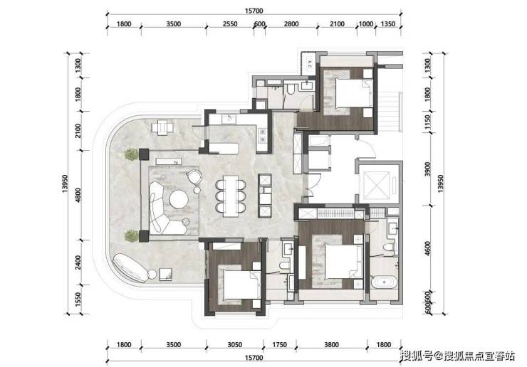 即使是最小的105㎡户型,也充分体现了设计师对度假豪宅家庭关系场的把握。搜建筑