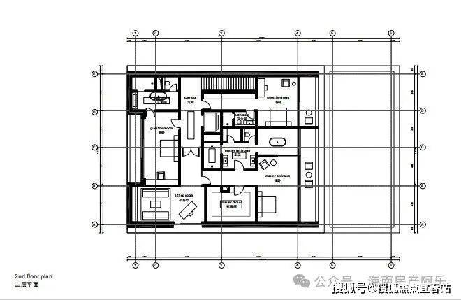 主卧位于二层, 近150平方米起居室,奢华大气,前面海背靠山,自然能量萦绕。