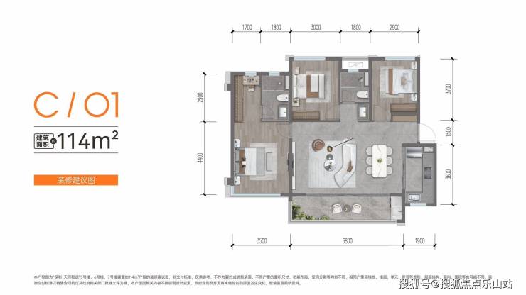107-114㎡(2T4户):经济三房,双卫设计,适合刚改家庭,高性价比控总价。