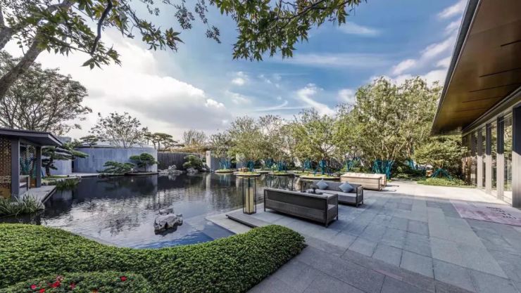 在建筑设计上,信达督府天承由国内拥有甲级设计资质的水石公司量身打造,遵循中魂西技的园林设计原则,提取传统东方意象,杂糅现代审美技法,将中国传统文化元素与当代审美结合,打造禅境中式美学园林,营造全新的建筑视觉观感。