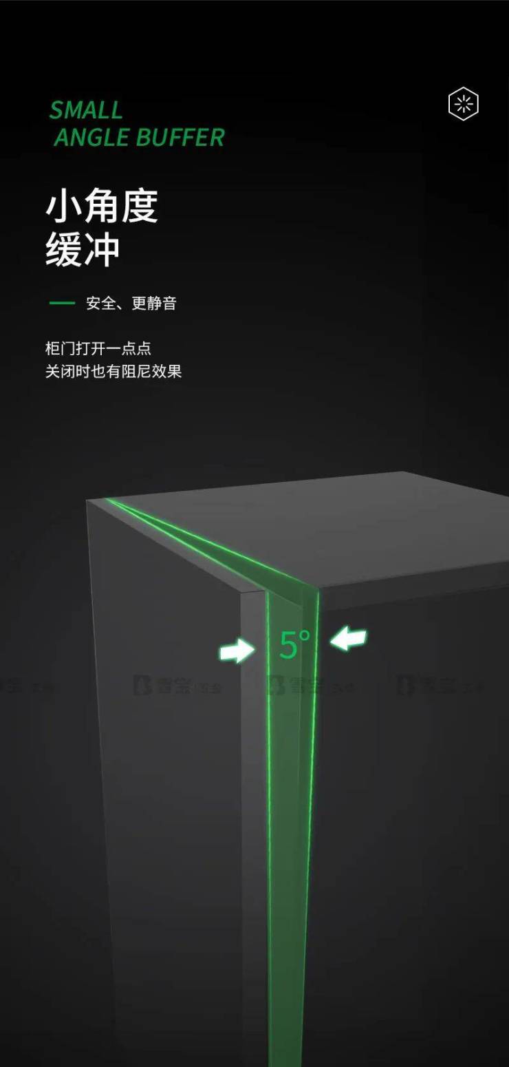 1、小角度缓冲,安全更静音,任意角度开启您的柜门都有缓冲效果,不会有撞击声音、更不会夹伤小宝宝的手指;