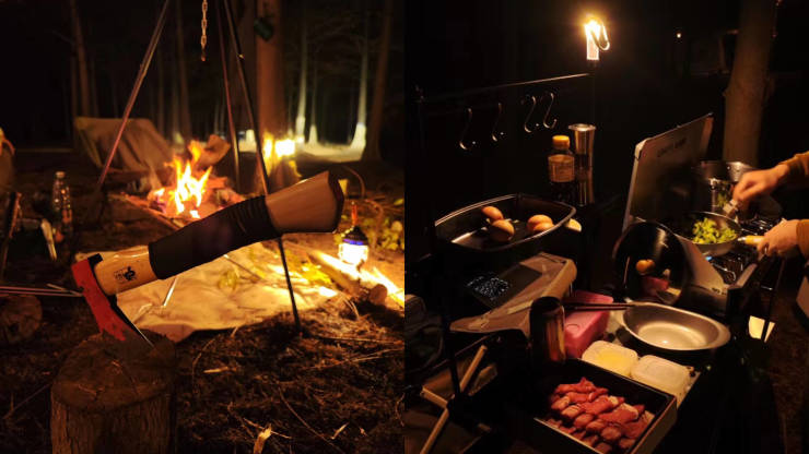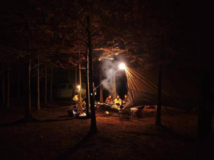 他媳妇说,“露营就是为了和朋友们聚会啊,围着火堆聊天,温暖也是双倍的。”