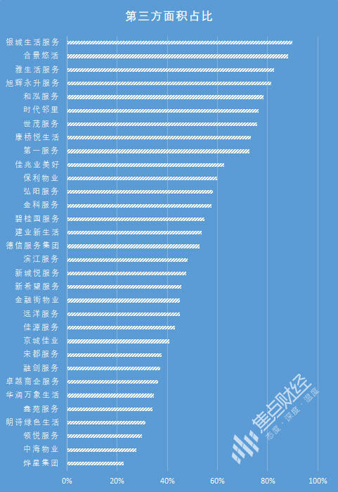 此外,由于上市物企多脱胎于房企,资本市场对于物企的考量,更加看重其脱离母公司后的独立能力和外拓能力,“短期看母公司,中期看市场投拓能力”。因此,第三方面积占比是判断成长性的一个重要指标。