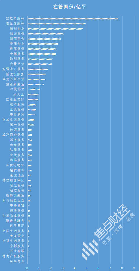 收并购+市场外拓带来物管行业在管面积突进。目前,已有49家物企披露2021在管面积数据,总在管面积达53.34亿平方米,平均增速51.7%,平均在管面积1.09亿平方米。