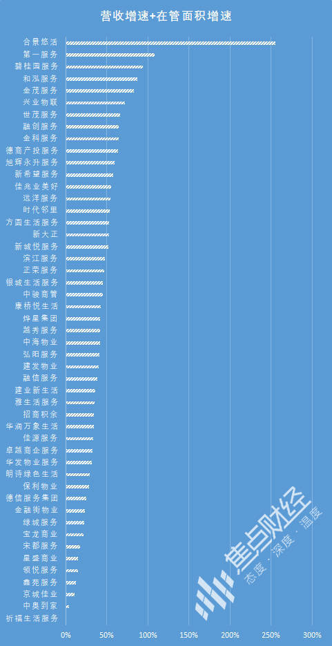 在物管行业,在管面积增速和营收增速可以一定程度代表成长能力。焦点财经经过综合计算发现,合景悠活凭借395%的在管面积增速和114.6%的营收增速,一马当先,成长指数超越第二名排名前列服务一倍多。