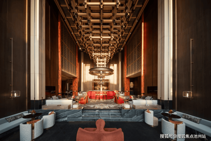 抬首望去,会所内巨型斗拱艺术装置,令人十分震撼。