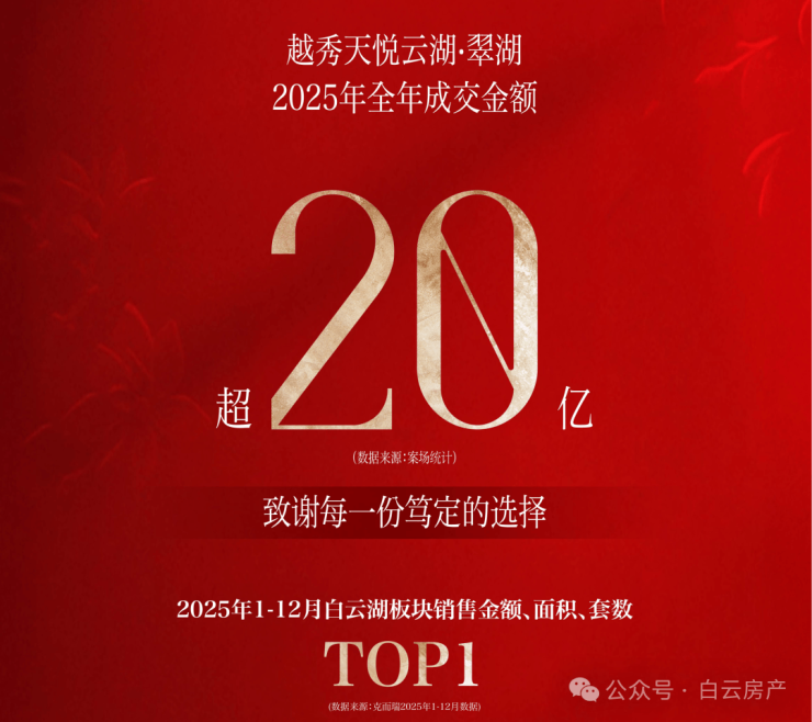 2025年,越秀天悦云湖以绝对实力霸榜白云湖板块,用实打实的业绩登顶销冠荣耀。