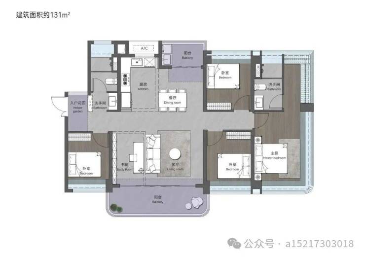 🔺 131 方(环幕双景观阳台,50 方超感大方厅)