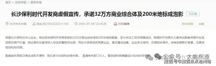 • 业主控诉开发商涉嫌“虚假宣传”,商业配套从二期推迟至尾盘仍未开工;