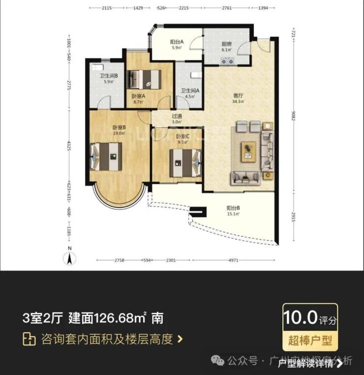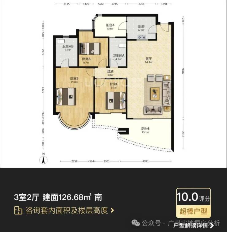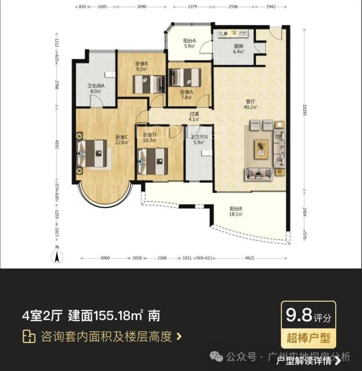 悦涛轩,二期建于2003年,是整个项目里景观最弱,存在感最低的组团。由7栋20层的住宅组成,靠近艺洲路和南二门,进出比较方便,全小区最小面积的90多㎡户型就集中在这个组团。户型有91的两房,101的三房,和133的四房。
