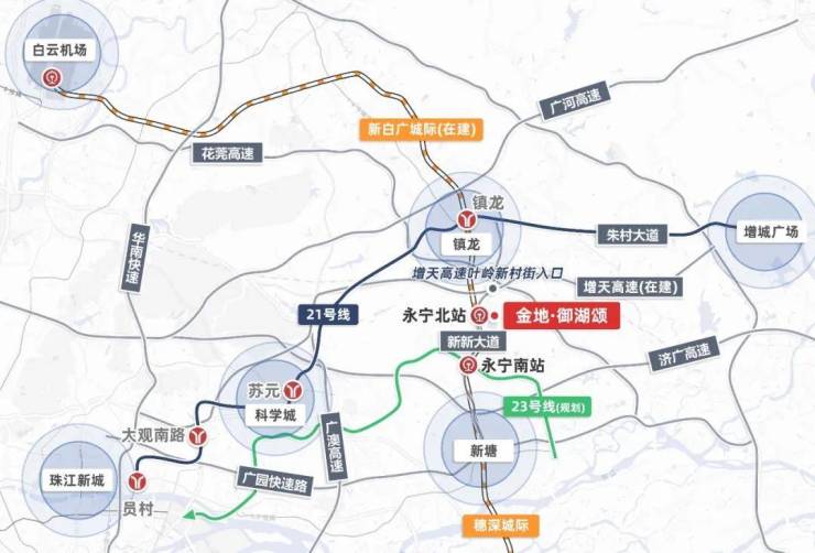 家门口还有永宁北站,通过新白广城际(预计年底通车),可以快速抵达白云机场、深圳机场,从而去到全国各地。