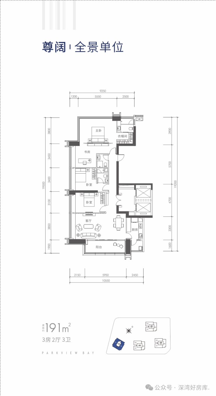 户型:分别是120平米3房2厅2卫,190平米4房2厅3卫