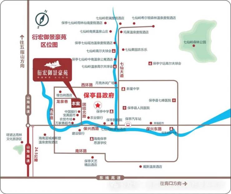 位置:(三亚后花园)海南省保亭县市中心团结北路与龙泉巷交汇处(市中心)
