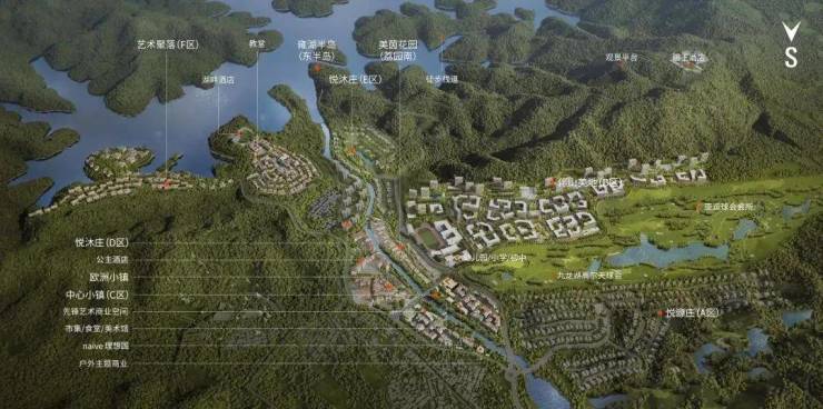 项目重点建设中心小镇C区、艺术聚落F区、伴山美地B区三大园区,并串联现状山地游乐、国王酒店、欧洲小镇与集散中心。