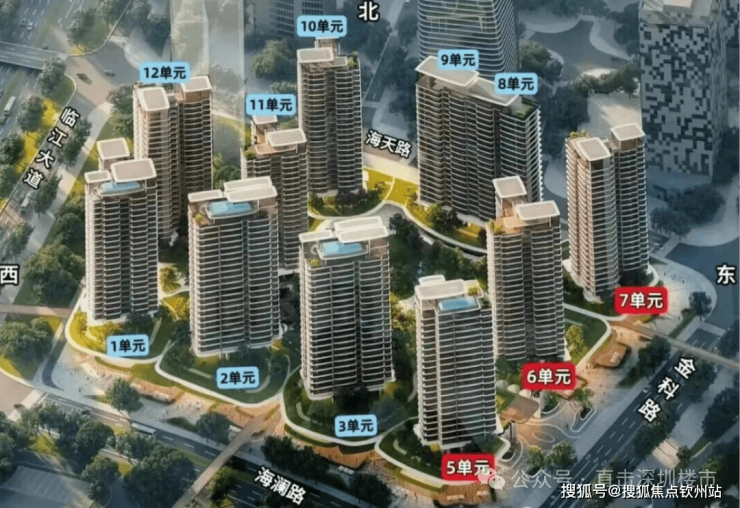 项目位于宝安中心区南街坊,东南向可俯瞰前海湾、欢乐港湾“湾区之光”摩天轮及前海城市天际线,西南向可观大铲湾腾讯“企鹅岛”海景,是宝安中心区少有的能实现一线海景视野的住宅项目。 2. 低密小高层设计