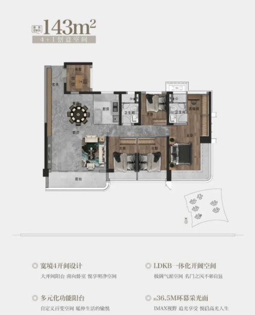 如果是人口较多的改善家庭,143㎡五房两卫会更合适。这个户型亮点不少,约15.4米面宽,采光面达到36.5米,客厅面宽5.7米,连接着宽景阳台,高层单位视野开阔。设置了双主卧,其中一个主卧面积约31㎡,带有独立衣帽间和主卫,居住舒适度很高。部分房源能看到社区园林景观,目前总价757万到866万之间,适合想一步到位的家庭。另外还有256㎡的大户型在售,具体可到售楼处了解详情。