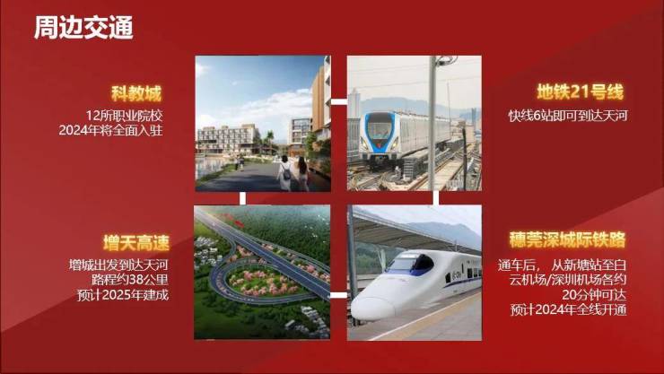增城位于广州东,南面是东莞和深圳,正处于穗莞深港黄金走廊和广深科技创新走廊的重要节点,广、深两座万亿城市之间的衔接地带。在《粤港澳大湾区发展规划纲要》中,强调以连通内地与港澳以及珠江口东西两岸为重点,构建以高速路、城际铁路和高等级公路为主体的城际快速交通网络,力争实现大湾区主要城市1小时通达。