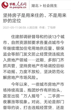 房地产税的目标是对于满足基本住房需求外的房屋征收税费,以引导个人合理购买住房。按照自己的住房需求去买房,而不是以投资的目的,即买房来住而非买房来炒。5月11日,人民日报发表《坚持房子是用来住的、不是用来炒的定位》的文章,重申了房住不炒定位的目的、力度、措施和重点。