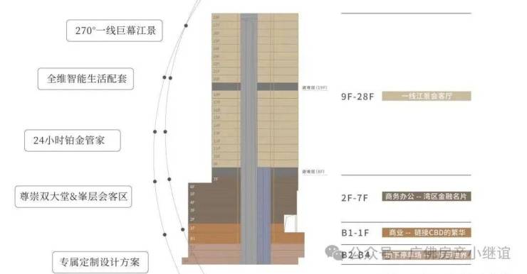 天赋壹号江景会客厅楼层分布在9-28层,项目将推出建面约370-654㎡一线江景会客厅,一线临江阅尽塔尖璀璨繁华,仅96席臻藏。