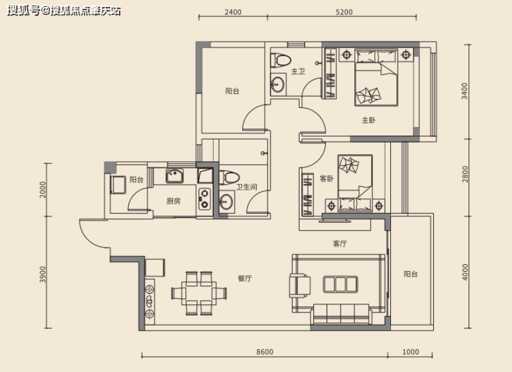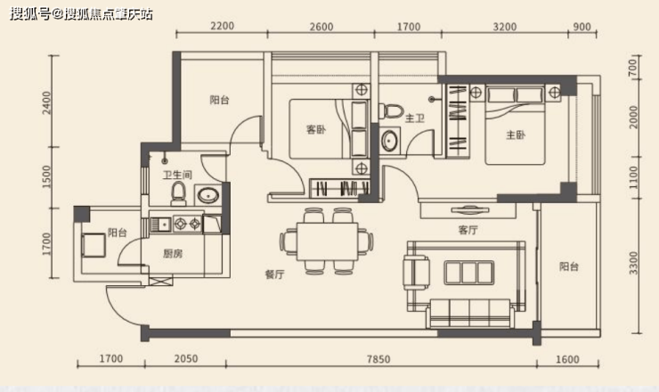 2、建面约85㎡(3房2厅2卫)