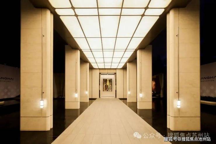 通过迎宾楼,便来到了约20米长的精神游廊, 该精神游廊同源招商玺“树宅相守”的设计手法,更致敬建筑诗人斯卡帕“以自然光感去创造时间驻留感”的理念 ,通过对光线、材质与空间的创新打造,营造充满宁静的归家场域。