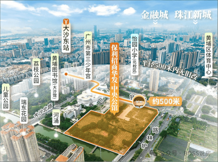 保利招商华发中央公馆坐落广州黄埔老黄埔大沙东核心,由保利、招商、华发三大央企联合打造,资金实力雄厚,准现楼在售,交付有保障,是老黄埔纯商品房标杆楼盘。项目步行500米达5/7号线大沙东站,3站直达金融城、10站抵达珠江新城,通勤便捷,坐享东进战略红利,毗邻黄埔图书馆等市政配套与多座生态公园,兼具通勤优势与人文生态氛围,适配刚需至改善全阶人群。