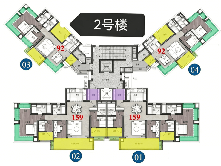 产品面积:72㎡、81㎡、89㎡、92㎡、116㎡、122㎡、159㎡3-4房