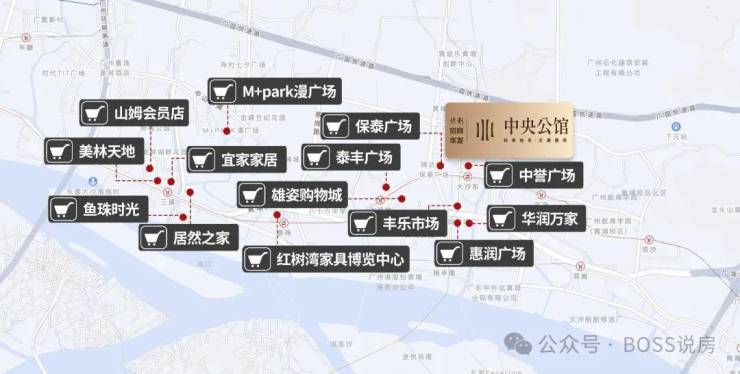 大型商场:周边 3km 范围内有惠润广场、黄埔潮楼名店城、星荟城购物广场、美林 M・LIVE 天地等。