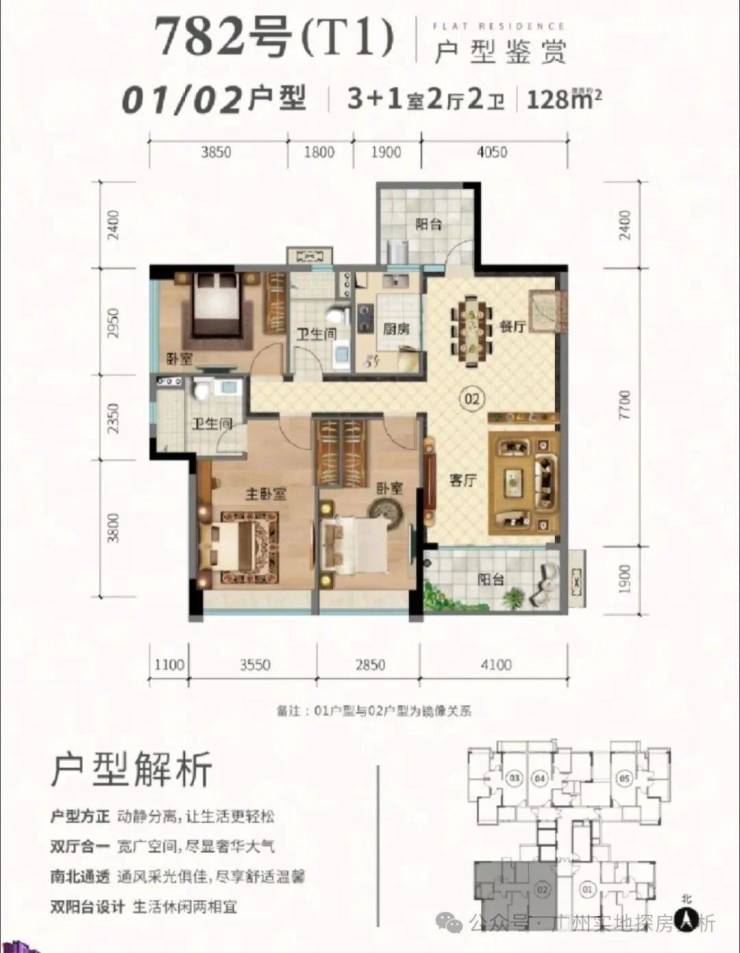 小区配套:小区配有约3.3万㎡综合商业体、约4000㎡空中花园(风雨连廊、环形缓跑径、儿童活动场地、康乐设施)、1所小学。