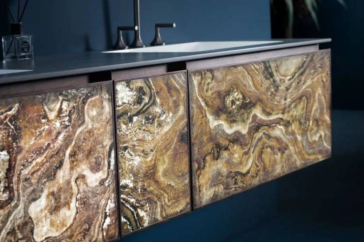 石材纹理与浴室柜的完美融合,以其别样的质感和独特的视觉效果征服了无数消费者。VIK唯可设计师将石材与浴室柜相融合,设计出神秘、高贵和精致于一体的浴室柜。每一处细节仿佛在透露着深邃的东方哲学,让人沉醉其中。