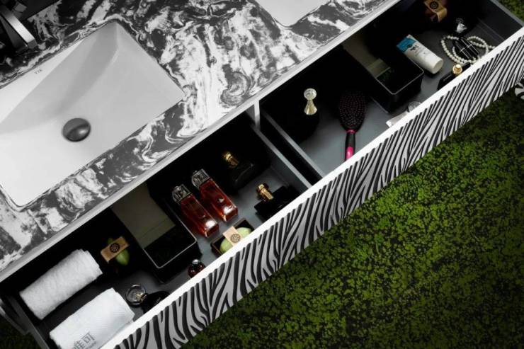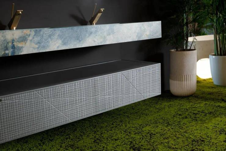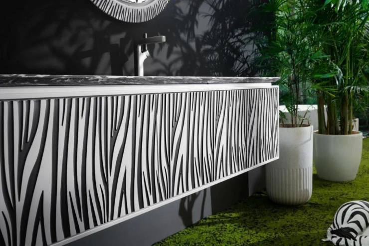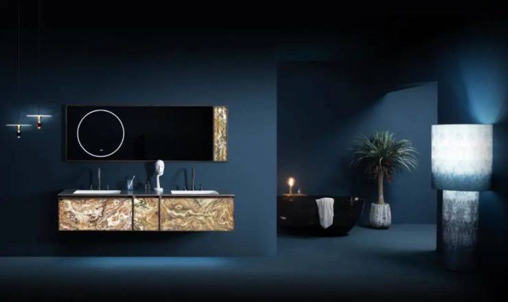 肌理的变化产生自然灵动的美感,与色彩的强烈碰撞,将时尚与设计,魅力与感性完美结合,演绎跌宕起伏的艺术空间,展露一种与生俱来的奢华感,为浴室空间带来一丝艺术气息。