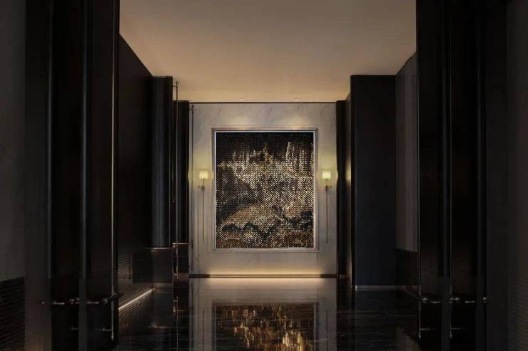 仿若“奢石博物馆”般豪华的“国宾级别”迎礼大堂,地面通铺太古青金奢石,墙面东方白及玉石背景和超尺寸奢华的parda绿吧台。