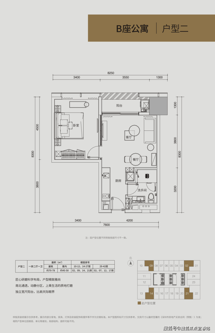 ▲建筑面积约70-78平,匠心研磨科学布局,户型精致雅尚南北通透,动静分区,上乘生活的质地打磨独立宽尺阳台,比肩天际眼界。