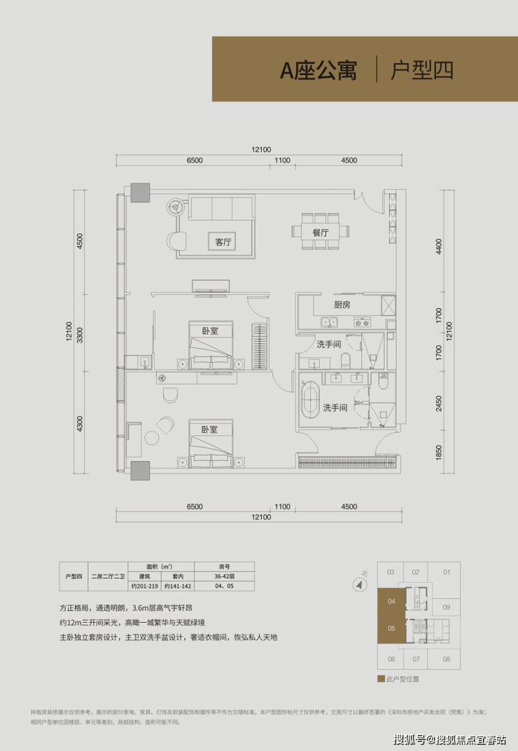 ▲建筑面积约201-219平,方正格局,通透明朗,3.6m层高器宇轩昂;约12m三开间采光,高瞰一城繁华与天赋绿境;主卧独立套房设计,主卫双洗手盆设计,奢适衣帽间,恢弘私人天地。