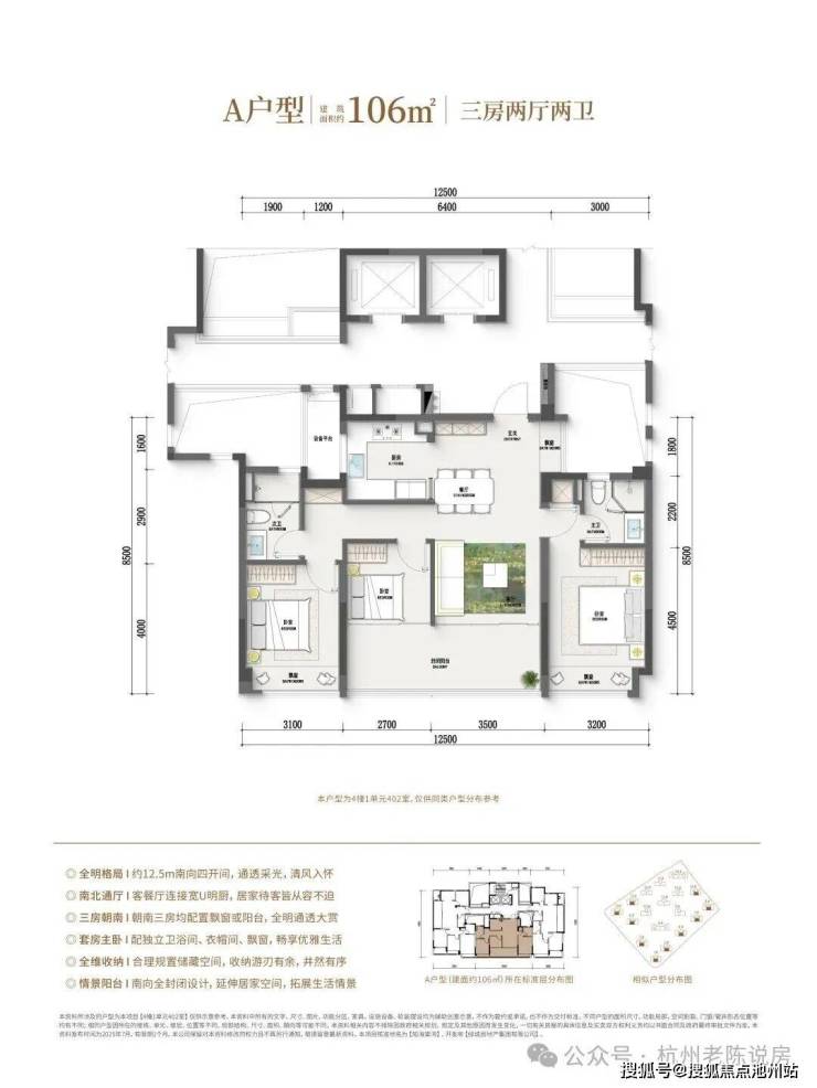 知海棠的户型大放异彩。首开时,当年轻人看到109㎡竟然做成了三房两厅两卫的观景边厅户型,106㎡户型四开间朝南,南向面宽达12.5米,128㎡则是4房大边厅,的确有种两眼放光的感觉。