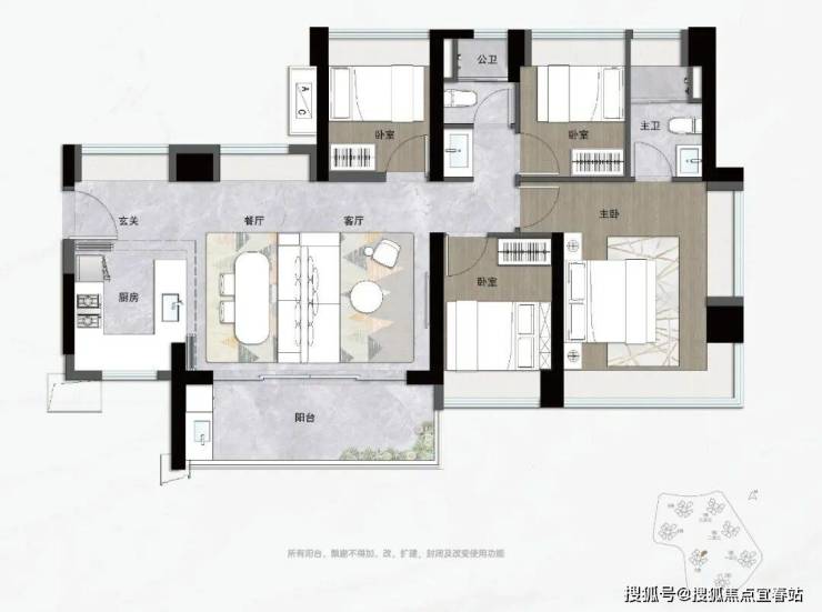 入门级的就是片区内罕有的约83㎡三房两卫,同样拥有主卧套房的私密、双次卧的方正和全屋飘窗,对二胎非常友好。