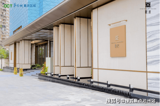 社区大门与围墙巧妙融合且均采用对称轴线,形成长度达百米的城市“超级门界”,在风格与选材上,采用“海派东方”的雅奢调性,葡萄牙米黄石材搭配白玉砾金奢石、发光云石、鎏金板等材料,形成“白+金”的典雅配色,塑造出恢弘星级酒店式门庭形象。