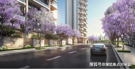 华侨城·熙宸则把这份理念运用到了极致,为了给沙坪坝老城风貌带来更好的城市界面,熙宸从“街区整理”入手,在街角转折处,借鉴迈阿密1428 BRICKELL豪宅项目打造都市绿洲的理念,为了不让茂密的绿植遮挡住项目远处的壮丽山景,精心选用蓝花楹作为街道两侧的绿化主景,规划出归家礼序蓝樱花大道。