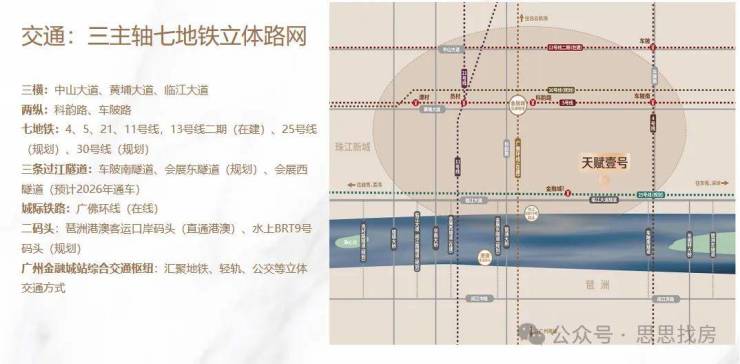 项目坐拥金融城交通枢纽优势,通过地铁25号线【金融城站】与广佛环线城际枢纽,实现与深圳、香港、澳门等湾区核心城市的1小时快速通达。地面交通网络通过"三纵七横"主干道系统,连接珠江新城CBD、琶洲CBD等核心板块,形成高效便捷的商务出行网络。