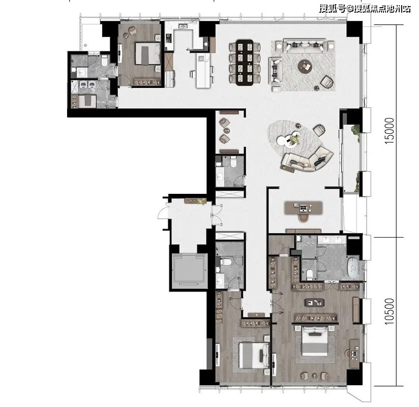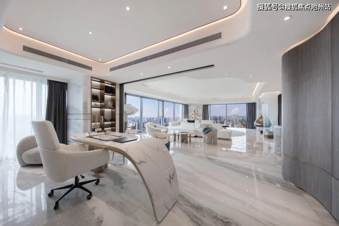 建筑面积约430方的摩天大宅由台湾先进室内设计大师邱德光亲自操刀,在巴洛克中式的装修主旋律上,注入Neo artdeco东方美学风格,以空间表达出生活的价值观。