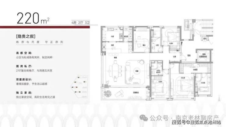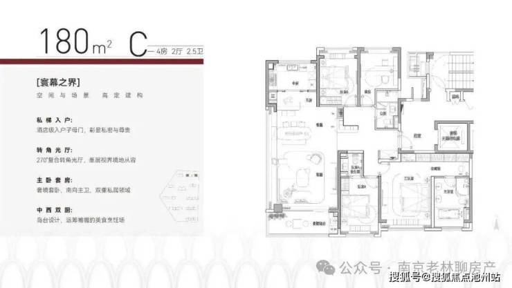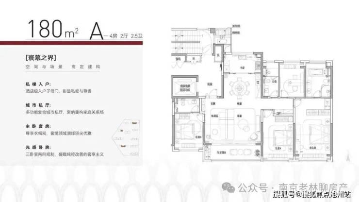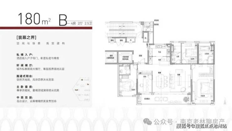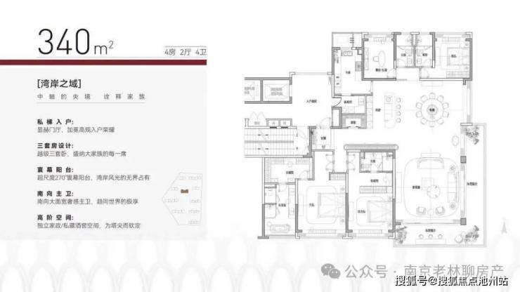 “多数人的仰望,少数人的拥有”,江宁第一豪宅。项目位于小龙湾板块,其北侧是东山——老江宁人的聚居地,西侧是百家湖——江宁最繁华的“新街口”,代表着新江宁的时尚与活力。项目共建10栋14-22层住宅,面积143/180/220/340㎡大平层,一梯一户单元设计。
