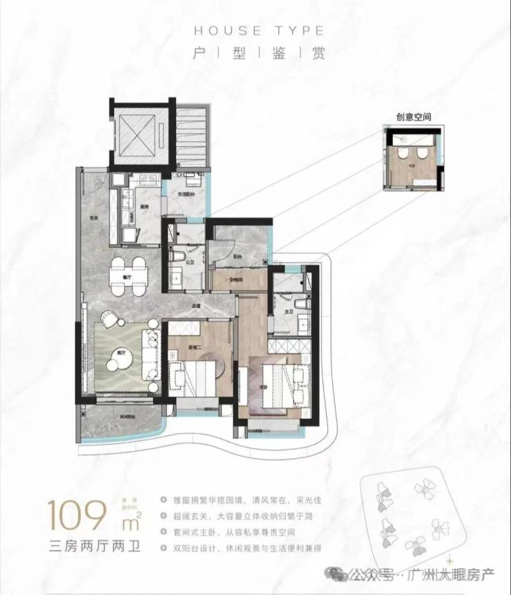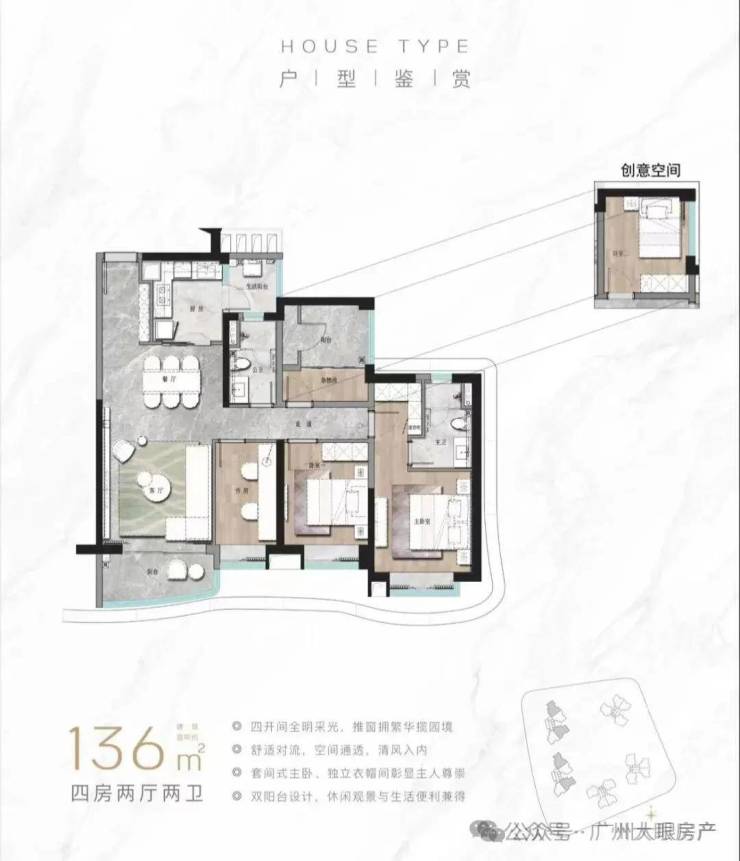 加推D栋新品,就涵盖了建面约109㎡、136㎡三四房。