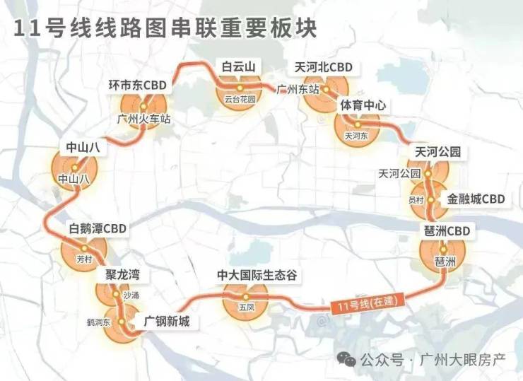 11号线是广州第一条的超级环线,市中心的“换乘之王”,直接圈定城市价值的“地段一环”。
